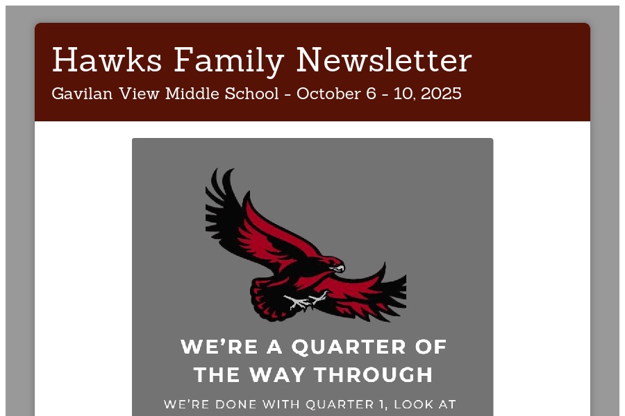 Hawks Family Newsletter Gavilan View Middle School - September 29 - October 3, 2025 Dear Gavilan View Community, Home of the Hawks! . . .