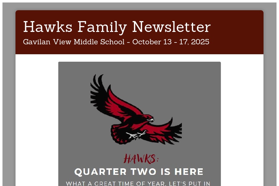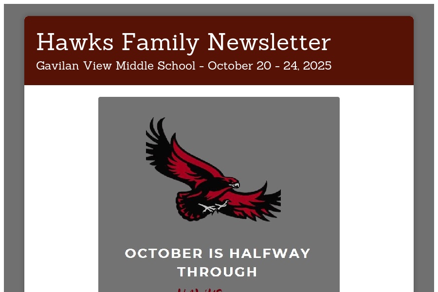 Hawks Family Newsletter Gavilan View Middle School - October 20 - 24, 2025 Dear Gavilan View Community, Home of the Hawks! A N. . .