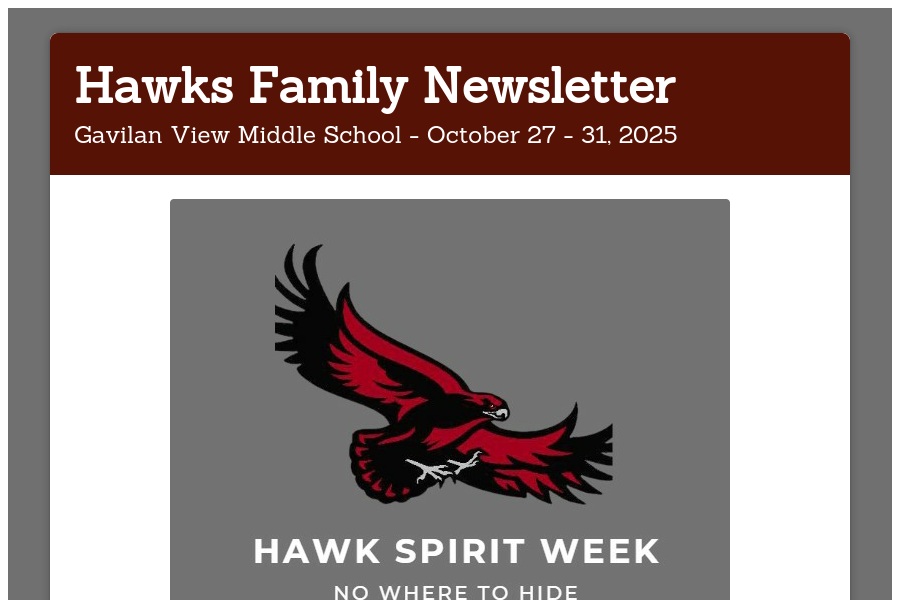 Hawks Family Newsletter Gavilan View Middle School - October 27 - 31, 2025 Dear Gavilan View Community, Home of the Hawks! A N. . .